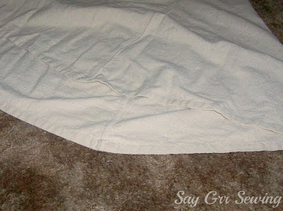 If you read a lot of blogs, you have probably noticed people using painter's drop-cloths for all sorts of things, from curtains, to tablecloths, to tree skirts. There is one thing, however, that I haven't seen many people use a drop-cloth for: clothing. About a year and a half ago I decided to remedy that, and made myself a skirt using one.